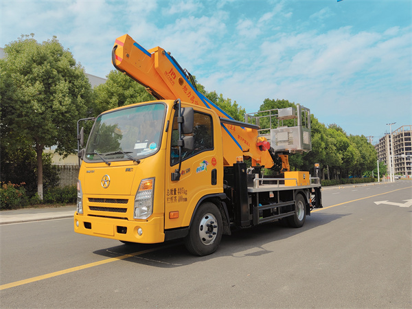 國六江鈴19.5米高空作業車 采用江鈴3815mm軸距底盤,型號:JX1083TK26帶空調、方向助力,由江鈴公司提供江鈴152馬力發動機,輪胎型號為7.50-16鋼絲胎。 江鈴19.5米高空作業車主要特點: 1、臂架采用高強度鋼板HQ60/5.0,折彎焊接成型...